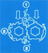 ● Directs solids into the cutting chamber